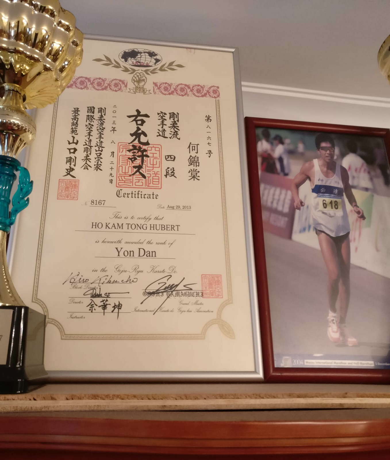 多項長跑比賽的冠軍,年青時曾是健美冠軍和空手道冠軍,到訪他家中,對櫃內都放滿了他獲獎的獎盃和獎狀,還有他在長