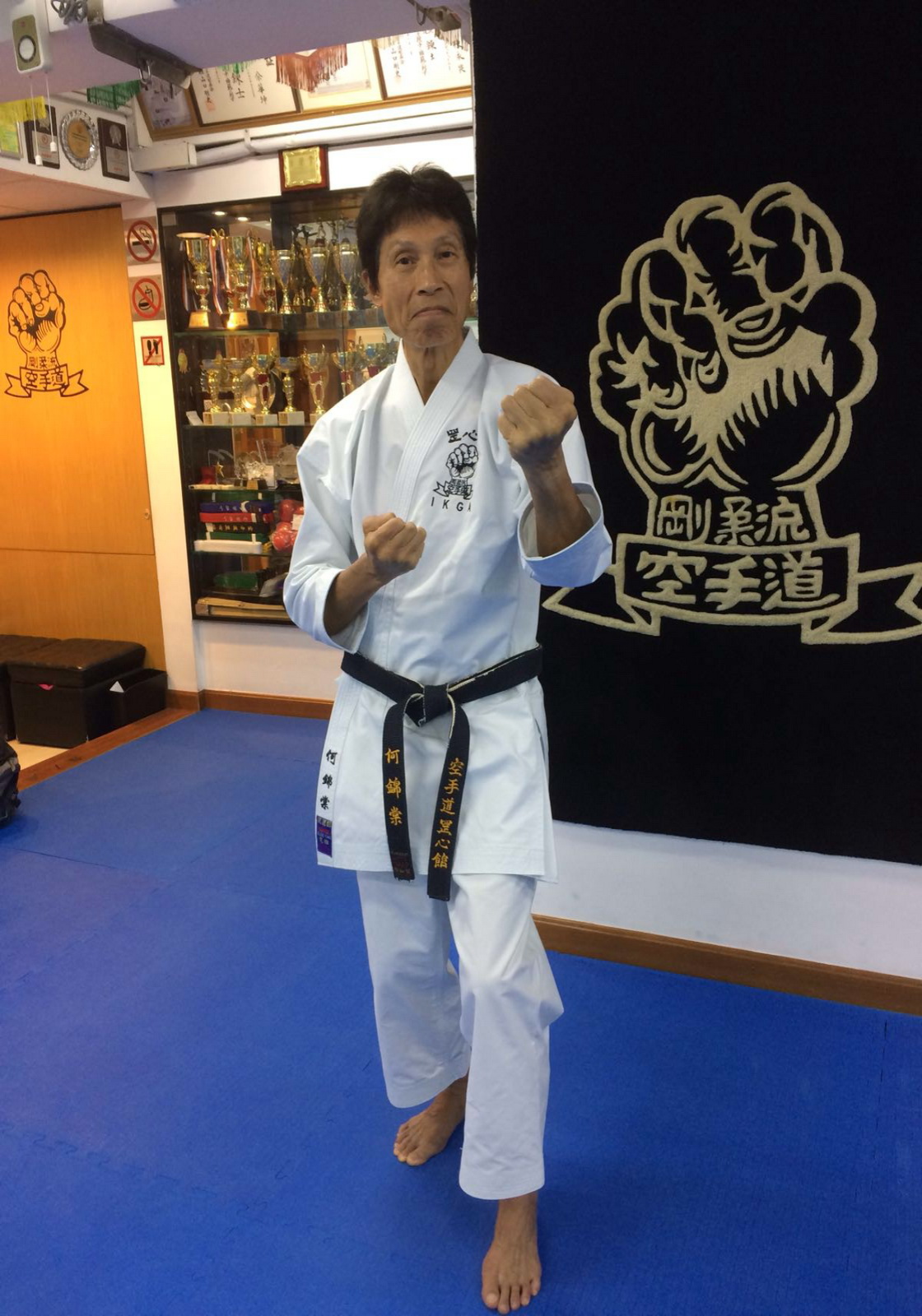 他的空手道生涯自1970年開始,至今他仍是空手道的熱衷者,最近才率隊到菲律賓的宿霧比賽。1970 年代是李小龍大紅的年代,李小龍是年青人的偶像,因此為了學習和模仿李小龍,他選擇了氣勢勇猛的空手道,自始對此門功夫的沉迷一發不可收拾,由打白帶開始到籃帶、啡帶至黑帶,一級一級考上去,他說考黑帶是最難的,因要跟對手對打有時要打至流鼻血,他現在是「剛柔流空手道四段」,至今他仍是空手道界的活躍份子。