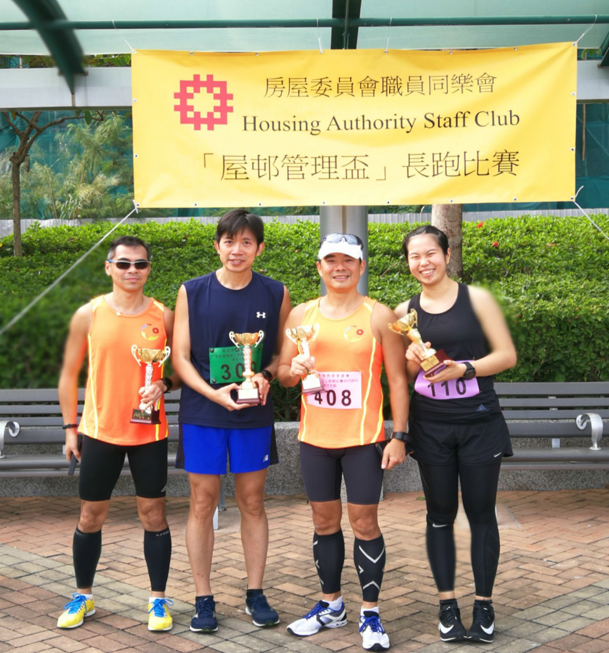 他說在認識的朋友中,有一位在何文田廣場開 診所的醫生跑友,他年屆70從心所欲之年,仍 然活力充沛,中午時大家相約在何文田跑去尖東,朋友間的友情是在大家都熱愛跑步的共同興趣中建立起來的;跑步可以感染別人,因他愛跑步也影響了同事,房署成立了長跑隊他起的作用可不少,他是長跑隊的中堅分子,也積極參與房署每年為同事舉辦的六公里賽事。不在跑季的日子,他是房署龍舟隊的成員。他又負責推動同事的體育康樂活動,讓大家更注意健康,讓工作及生活過得更平衡及充實。
