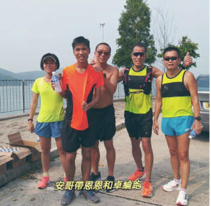 但凡大匯操都可以見到安哥帶着兩位小朋友跟隨大隊的身影,安哥是樂華會的中堅份子,長年無私地服務會方,他經營運輸生意,但每年的「樂華盃」都出錢出力為賽事奉獻,很讓我們敬佩,還有的是安哥帶着的兩位小朋友欣欣和卓倫是由會友帶到斧山參加練習,經過 2 至 3 年的努力,兩人經已在身體、思想和社交能力等方面大有進步,他們的家長當然十分感謝樂華會,特別是安哥的悉心照顧和指導,會友們都笑言安哥對他們已扮演了父職,事實上一點也不誇張,安哥從照顧他們跑步時的跑衫褲入手,包括水樽準備够嗎?等細節都無微不至。就在荃灣長課中安哥全程照顧兩位小朋友,有時跑在前面領先讓他們追上來,以提升他們的步速。安哥謂兩人每年都會在中環參加一項 5 公里賽事,經過在斧山的磨練,現在欣欣已可以以 24分完成 5公里,而卓倫以22分完成。見到他們的進步安哥當然十分開心,而安哥的為人、愛心更是我們尊敬和學習的榜樣。