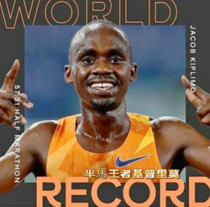 原紀錄是KANDIE 在2020 年的華倫西亞半馬創造,為57 分32 秒,那場比賽堪稱史上最快的半馬比賽,有4 人跑進58 分大關。實際上,當時的比賽基普里莫也參加了,他跑出57 分37 秒獲得第二。
