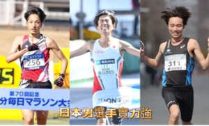 男子選手方面,日本派出了國內紀錄保持者鈴木健吾(2 小時4 分56 秒),今年別府大分每日馬拉松冠軍西山雄介(2 小時07 分47 秒),以及今年剛跑完首馬,創日本首馬紀錄的星岳(2 小時07 分31 秒)。